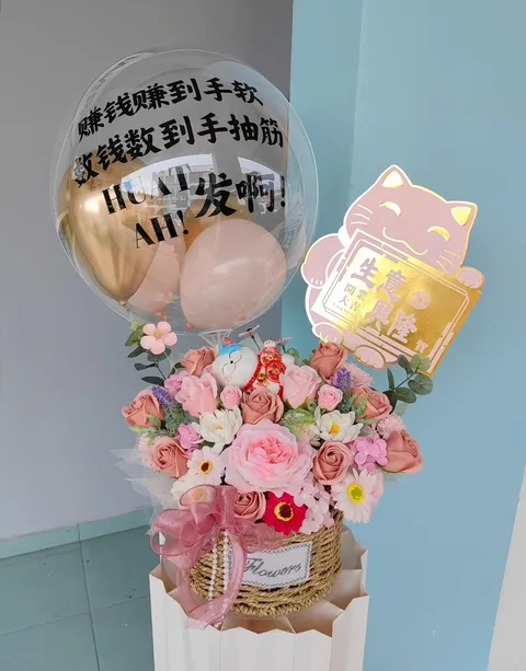 Lucky Cat Flower Basket 招财猫大麦开张花 39