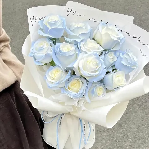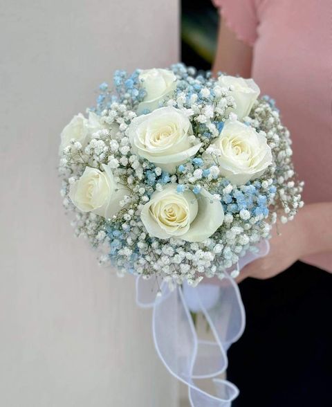 Elegant Blue & White Roses Bouquet 49